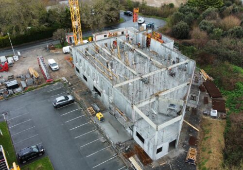 Construction d’un immeuble tertiaire en clos /couvert. Le maître d’ouvrage est GRH & AUDIT.
