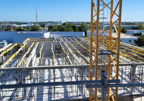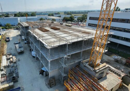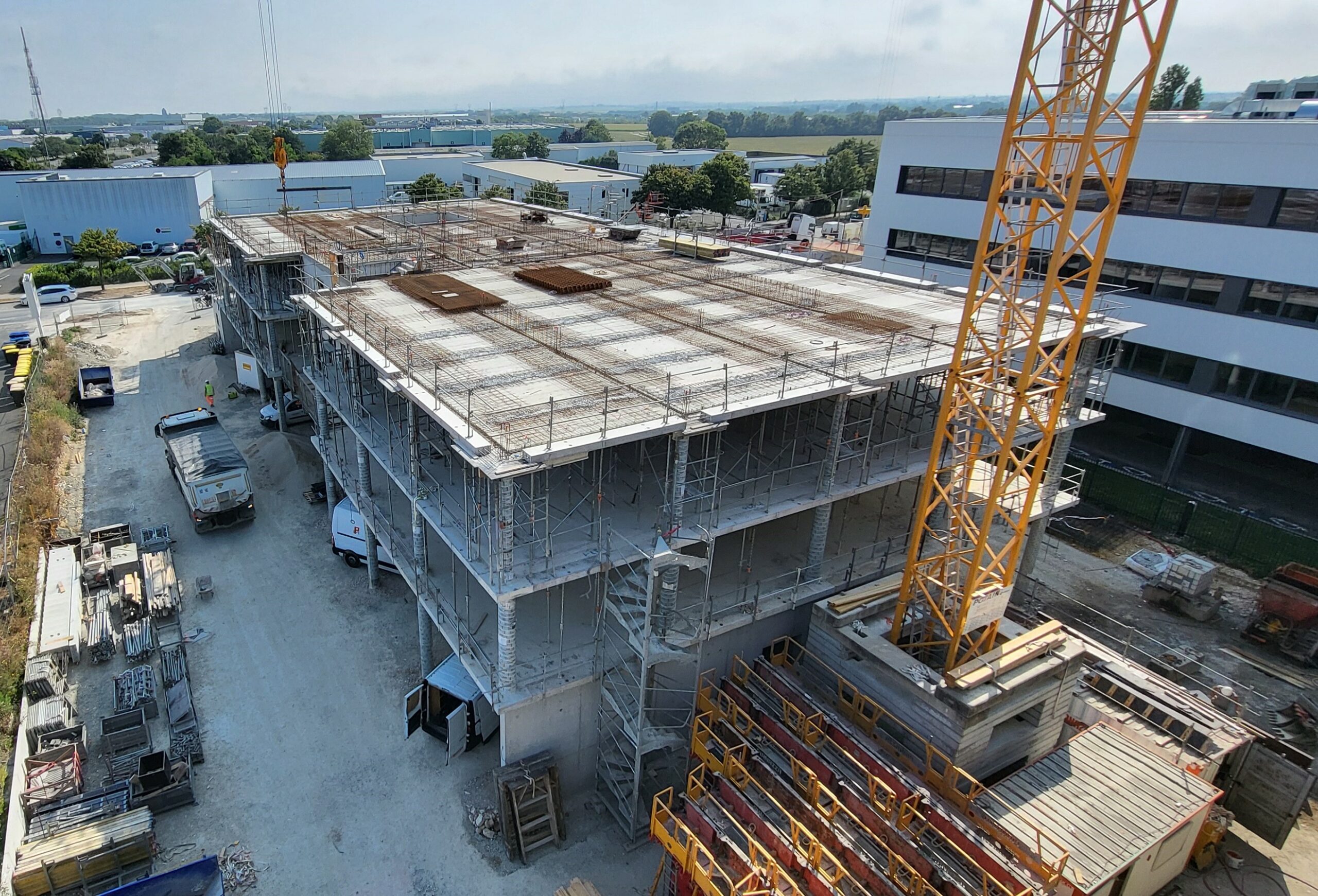 – Structure poteaux, poutres, planchers prédalles.
