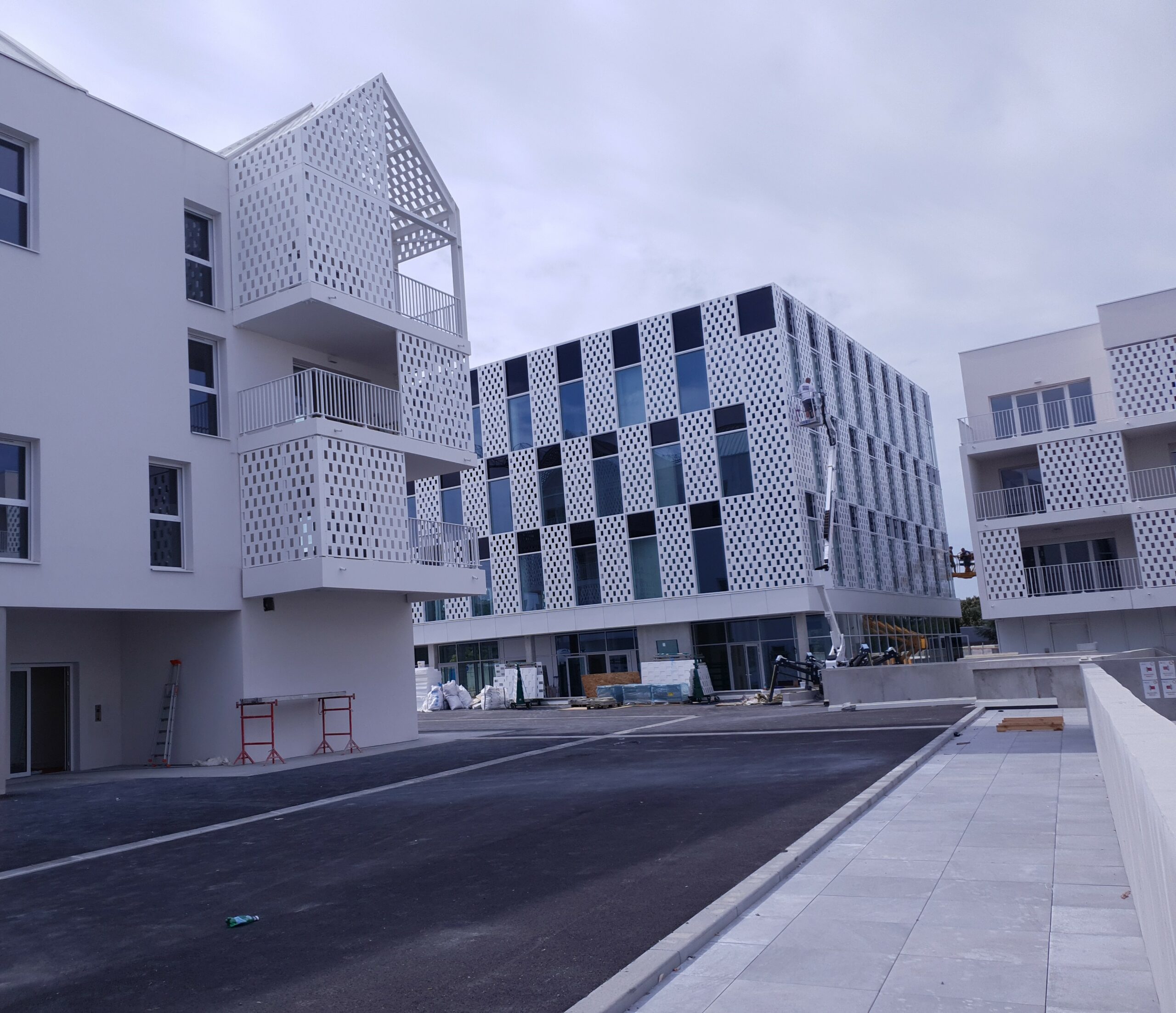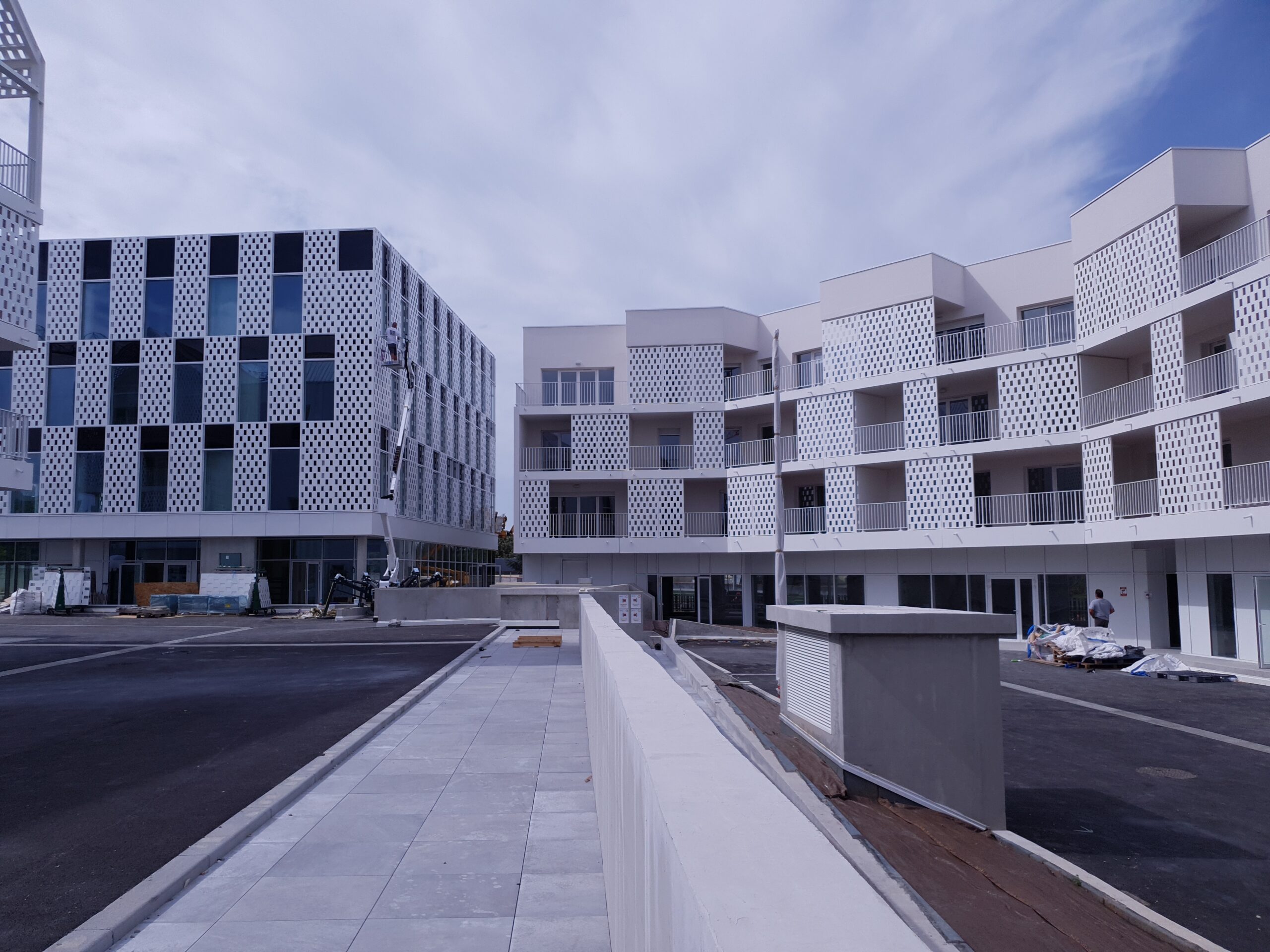 Les fondations sont superficielles. La structure des bâtiments est en béton armé, comprenant voiles, poteaux et poutres. Les planchers sont réalisés en dalles champignons et dalles alvéolaires.