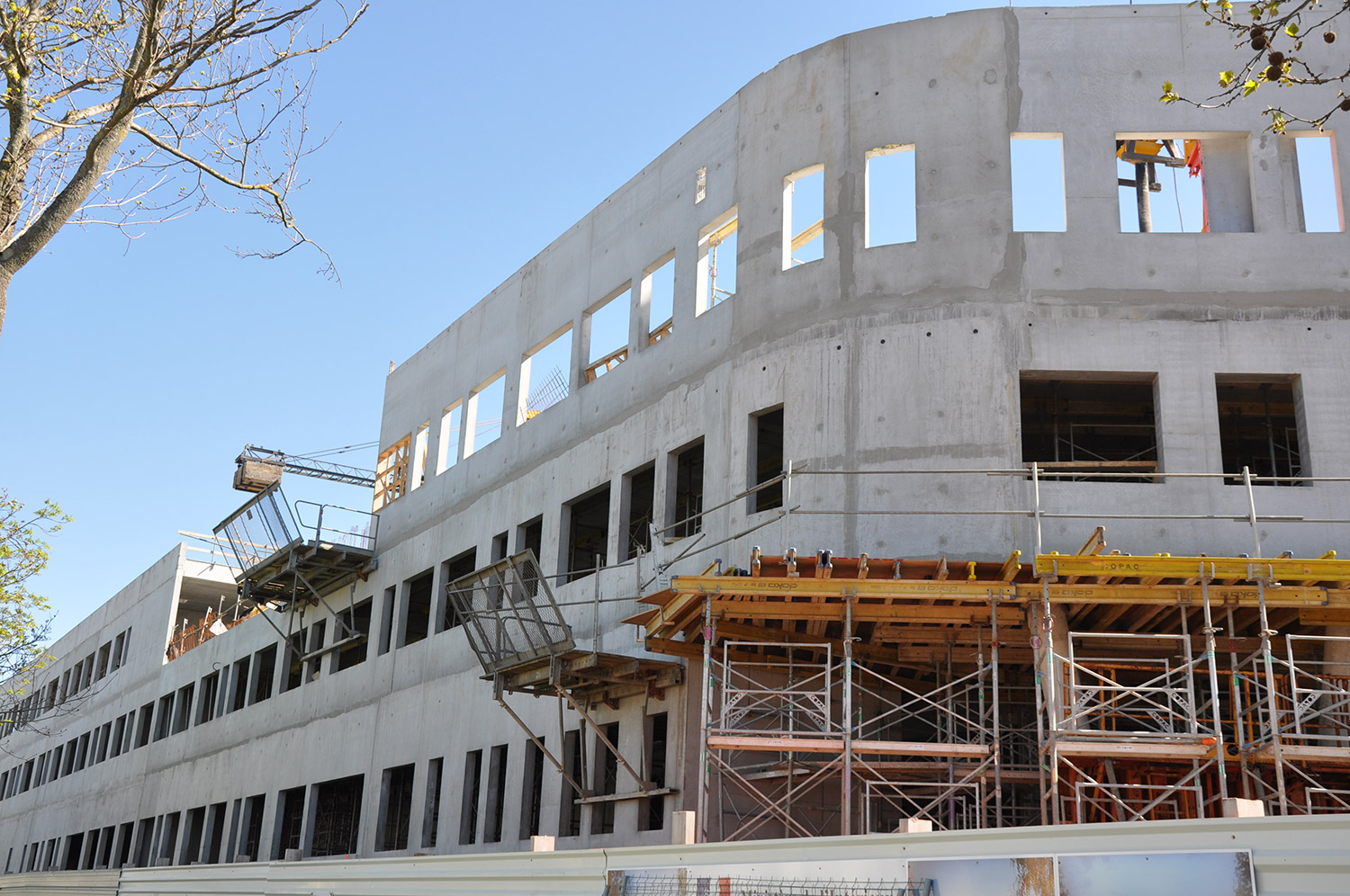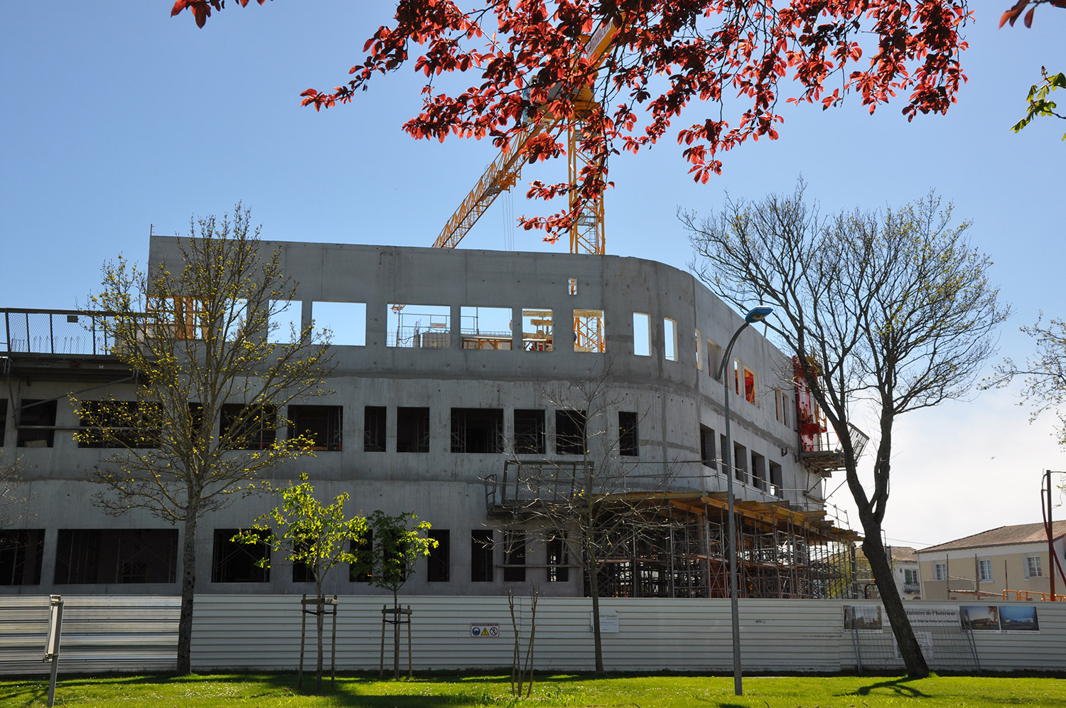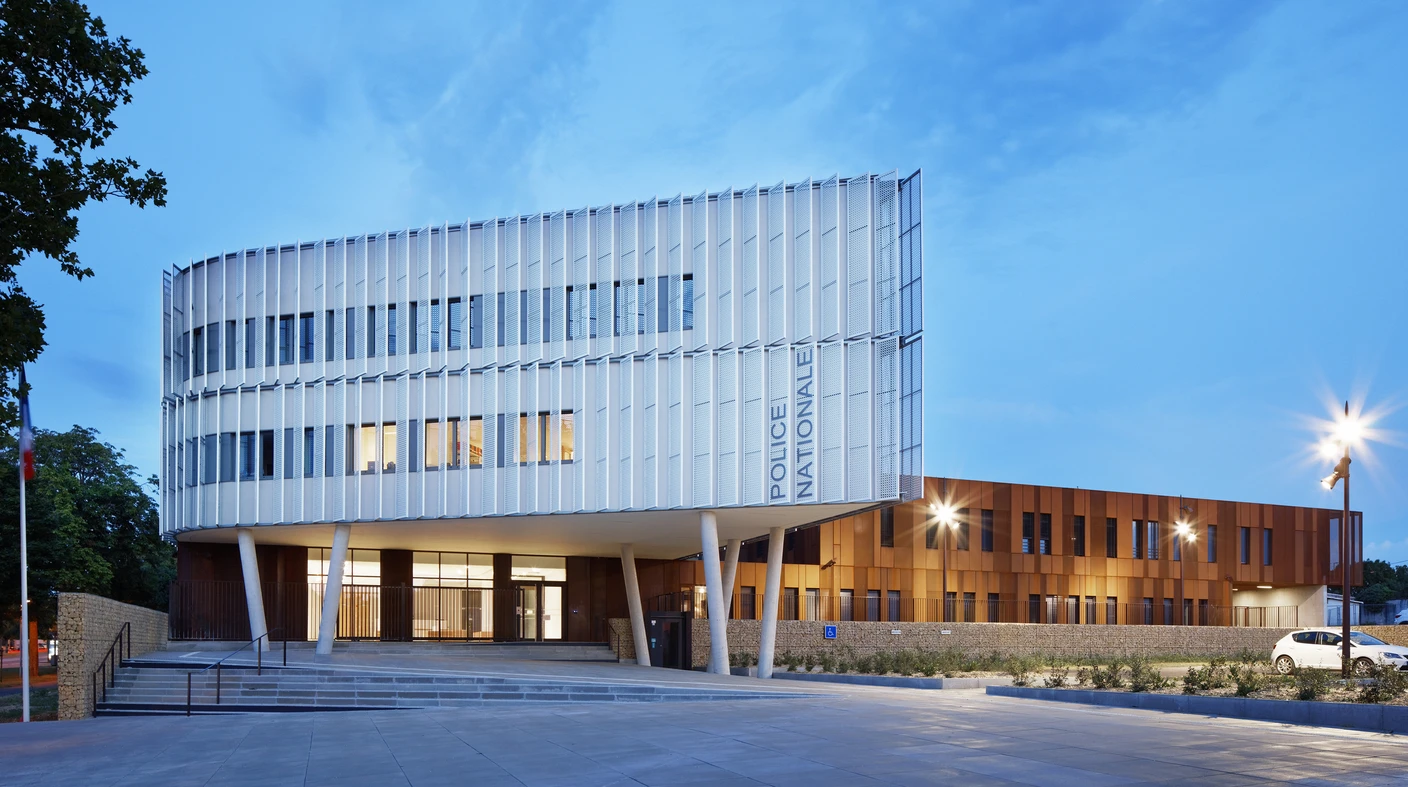 Construction du nouvel Hôtel de Police de La Rochelle. Réalisation du lot clos-couvert avec de nombreuses interfaces entre gros-œuvre / menuiseries extérieures / serrurerie et traitement de façades.