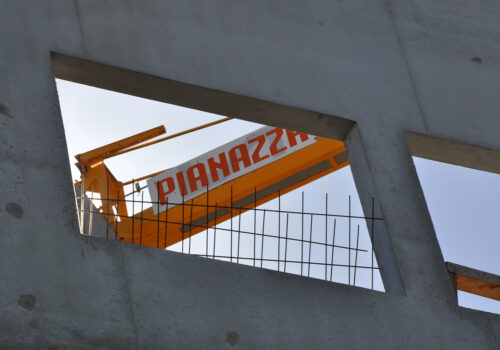 • Mise en œuvre de poteaux circulaires en béton armé supportant le débord de la façade principale à l’entrée de l’hôtel de police.