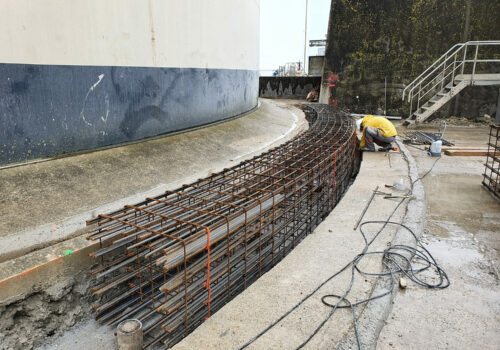 Le projet consiste en l’affectation du réservoir 52 en essence sur le dépôt d’hydrocarbures de PICOTY à La Pallice. Réalisation de 56 micropieux sur toute la périphérie du bac 52 ainsi que d’une longrine béton pour la pose de la double enveloppe. Nos équipes qualifiées sont mobilisées pour réaliser le gros œuvre.