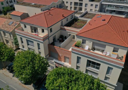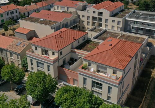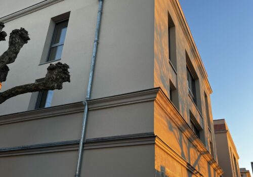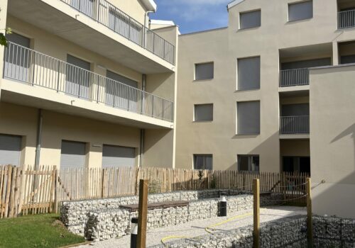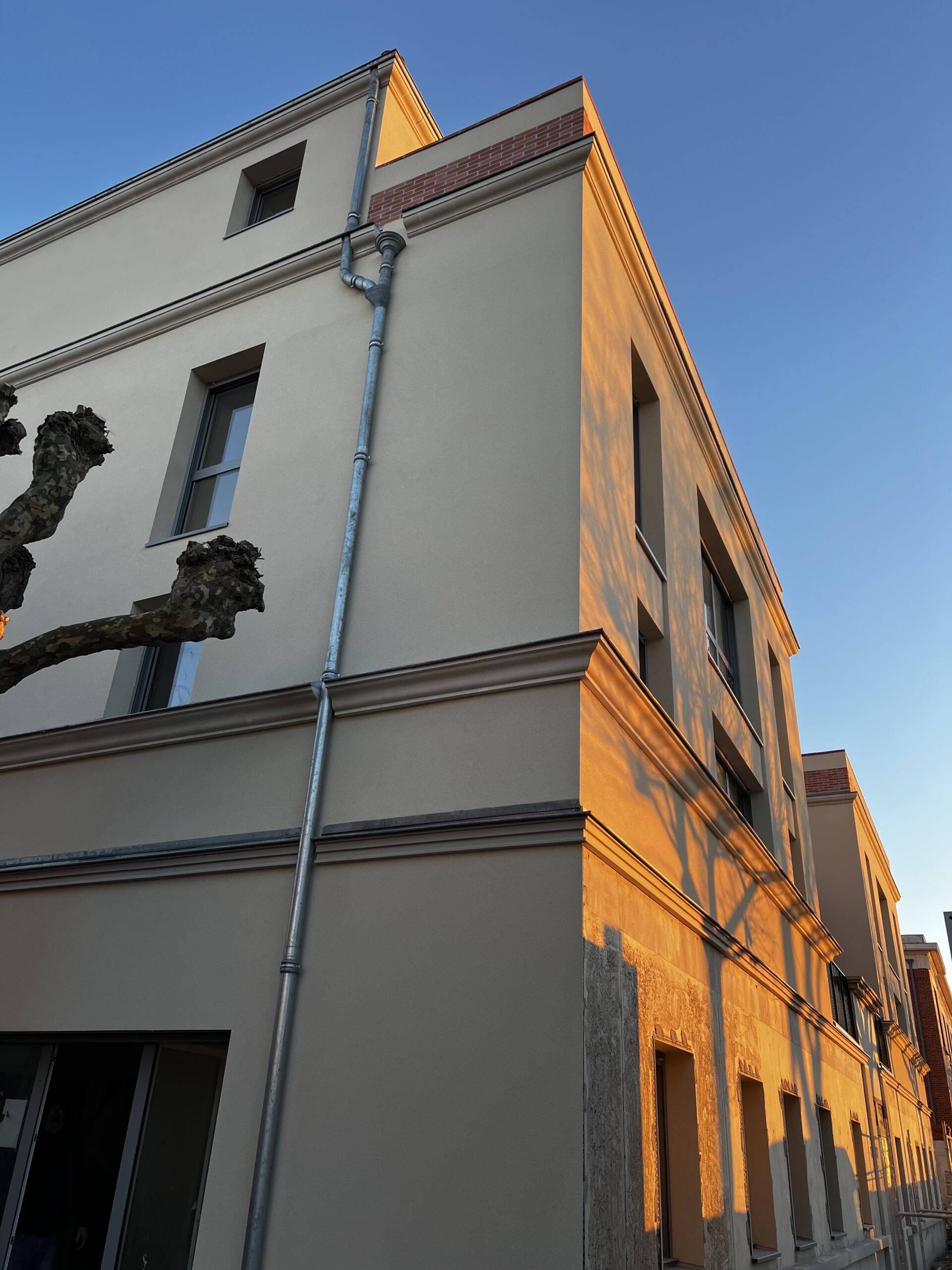 Cette résidence comprend 81 logements répartis sur 2 bâtiments allant jusqu’au R+2 et R+3 partiel sur un parking commun enterré. Réalisation d’une façade classée au Bâtiments de France avec pose de corniches et bandeaux en pierre de taille. Ce projet est réalisé pour le compte de BOUYGUES Immobilier.
