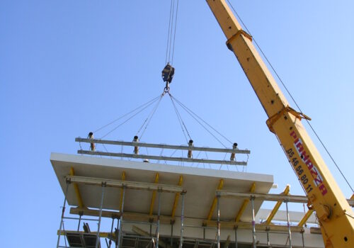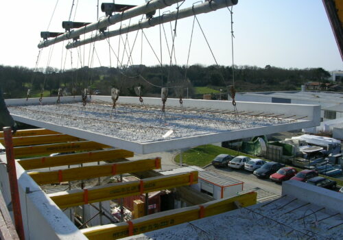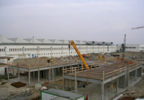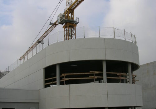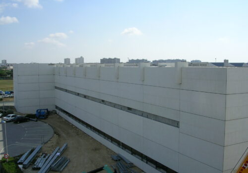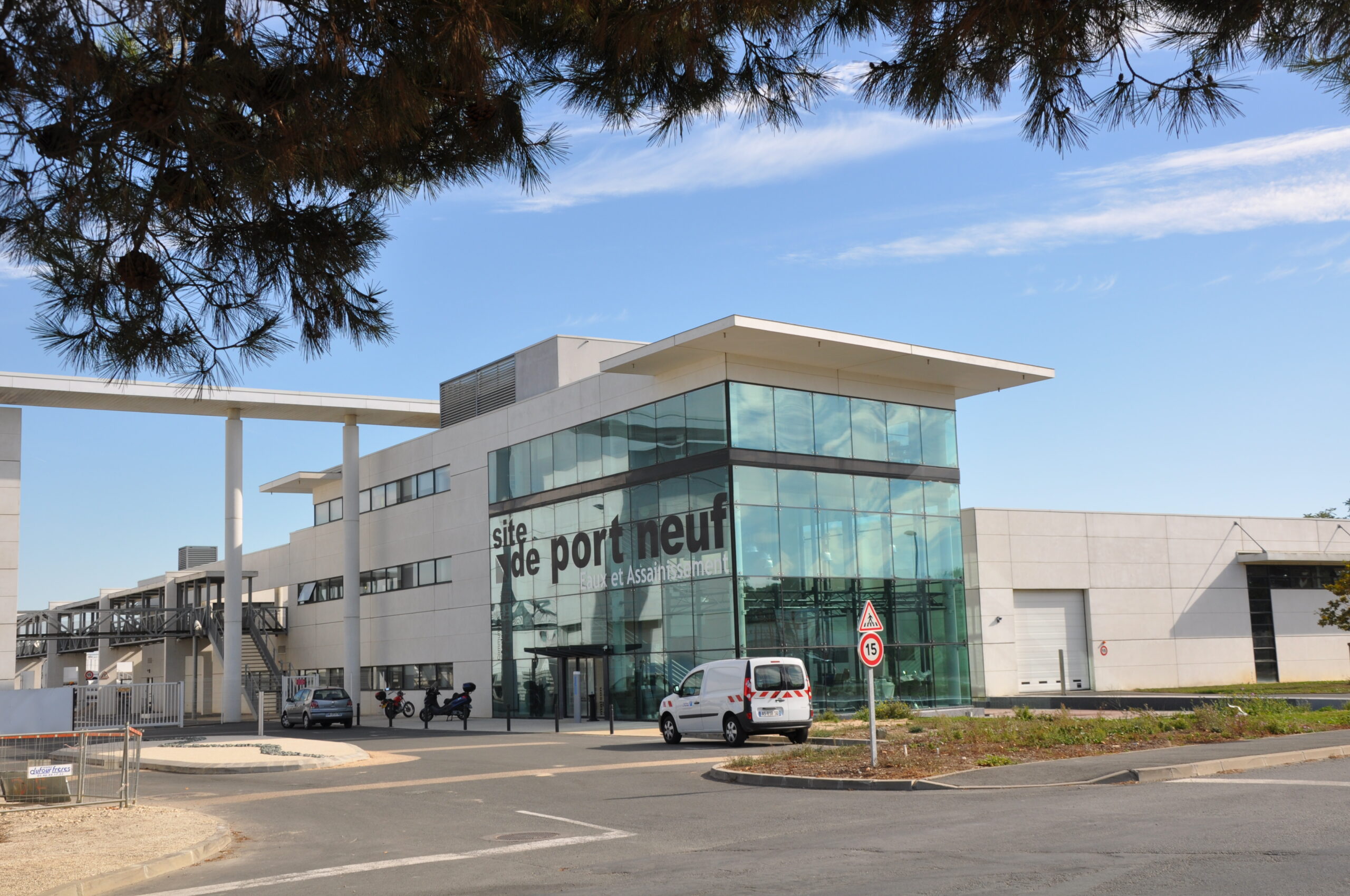 Ouvrages de traitements des eaux usées. Réalisation du bâtiment technique de traitement et des bureaux.